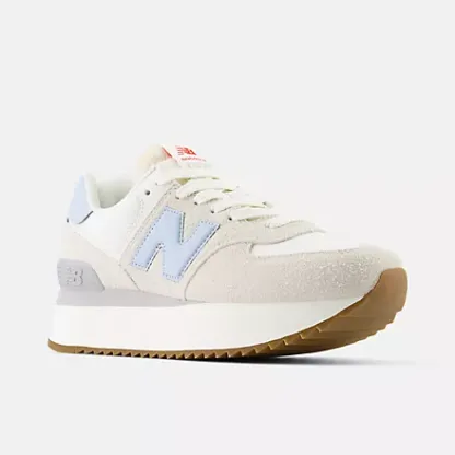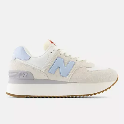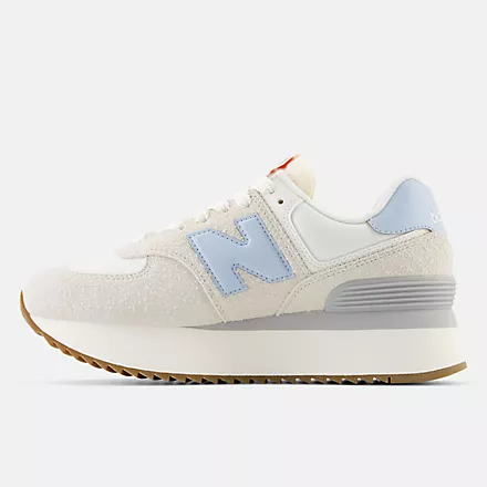 The 574 was built to be a reliable shoe that could do a lot of different things well. The 574��s unique, yet easy to wear set of qualities quickly made it a closet staple across the globe. The 574+ is a striking, contemporary twist on the classic 574 design. The addition of a stacked, two-piece EVA midsole with a scaled down ENCAP piece provides a polished sense of exaggeration. The midsole proportions are complimented by a ripple outsole, inspired by the original Trackster. Pigskin suede overlays and perforated leather and synthetic details offer a premium execution of the familiar 574 upper design.