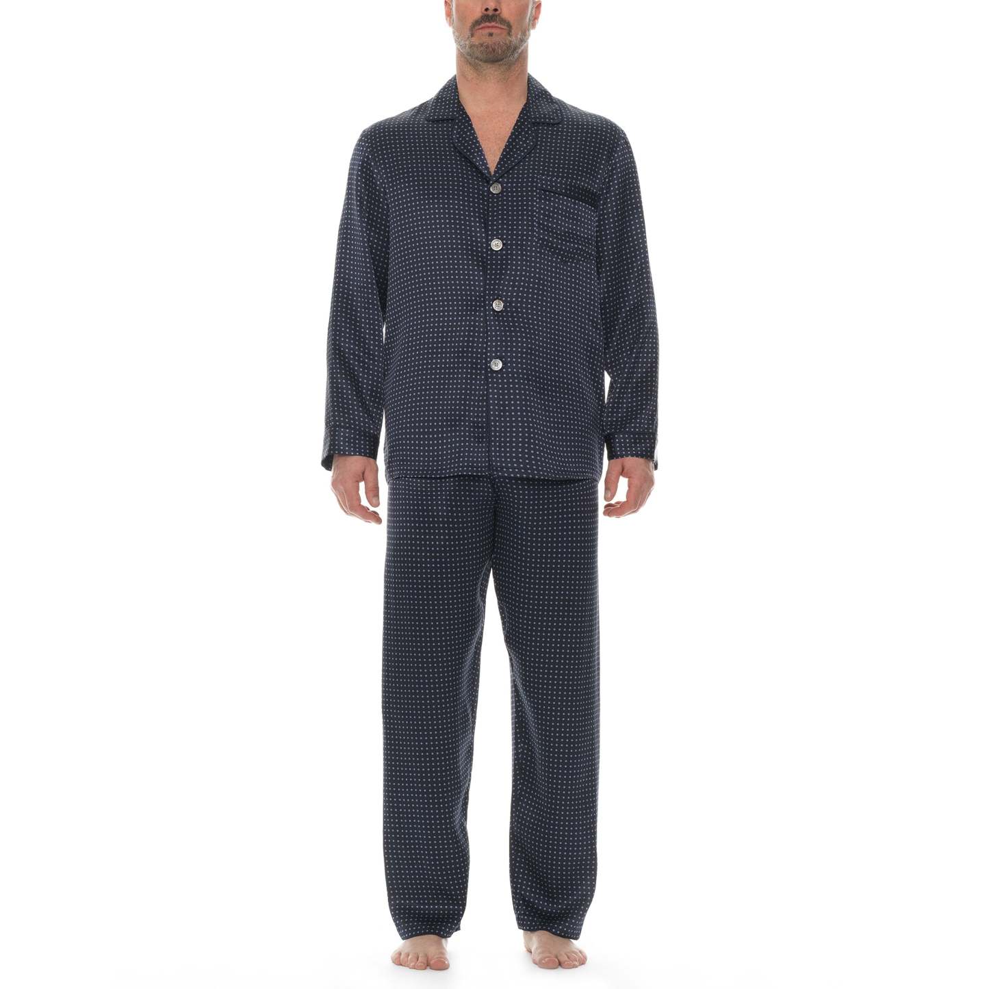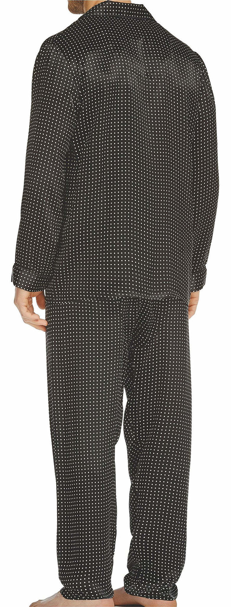 Luxurious 100% silk charmeuse pajama is sophisticated, elegant and masculine in black with a subtle cream dot. The perfect gift for birthday's, a groom or any romantic evening.
