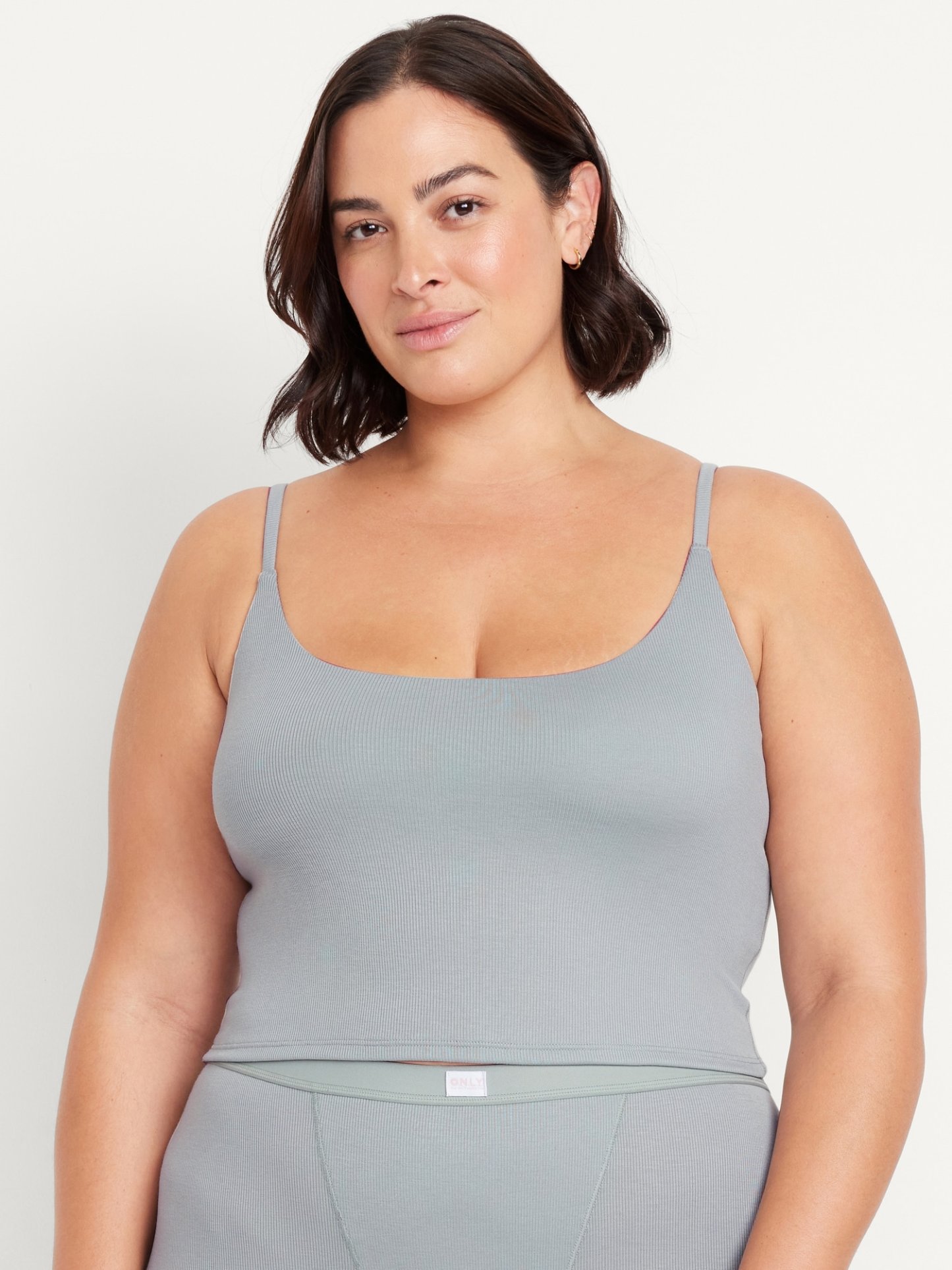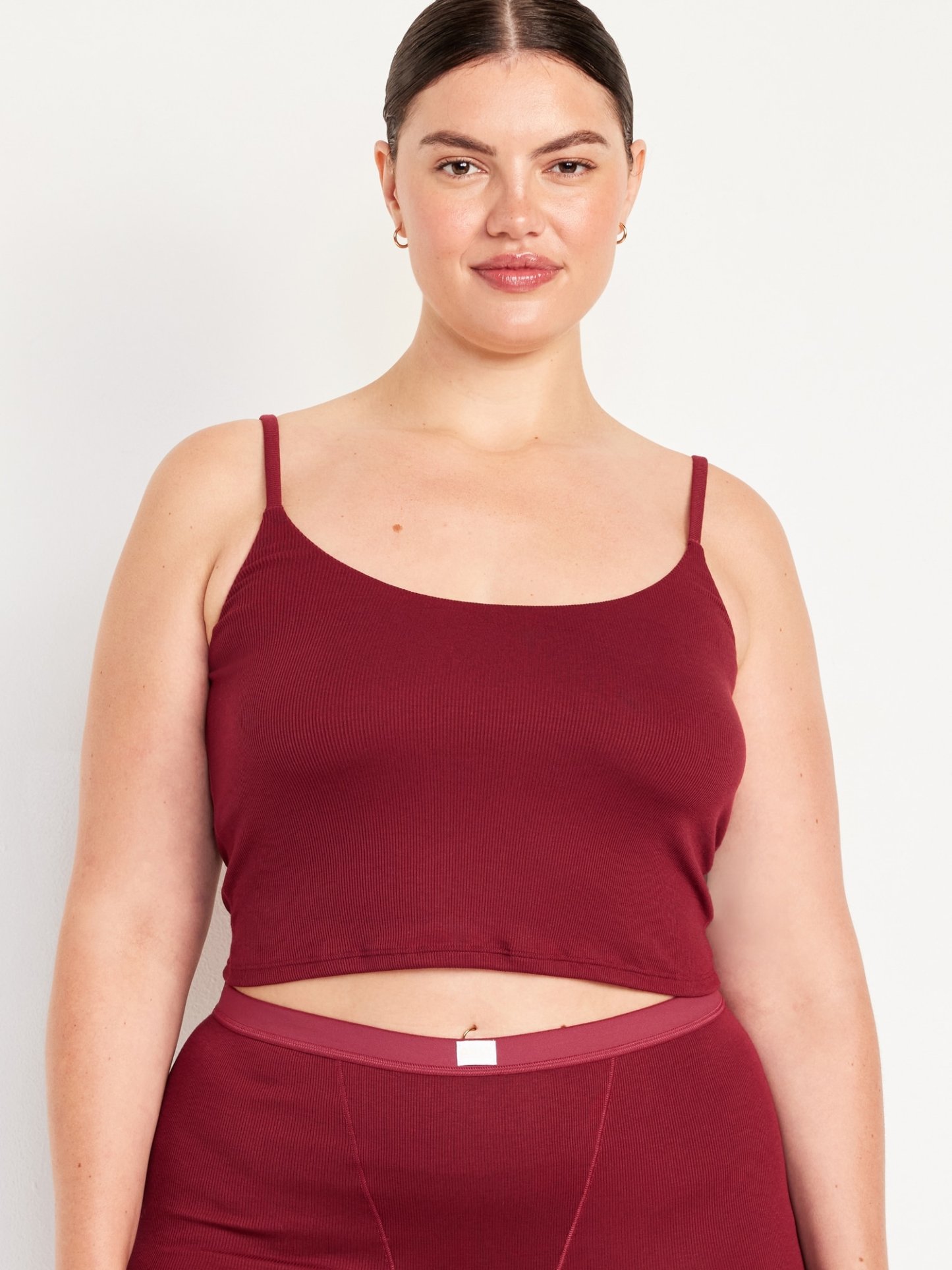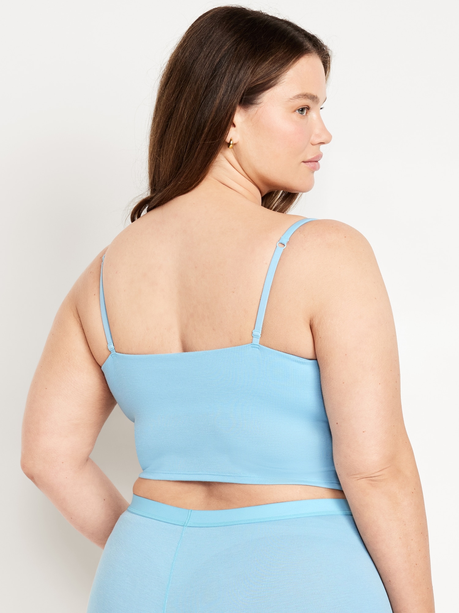 Women's brami top hits just below the ribcage.