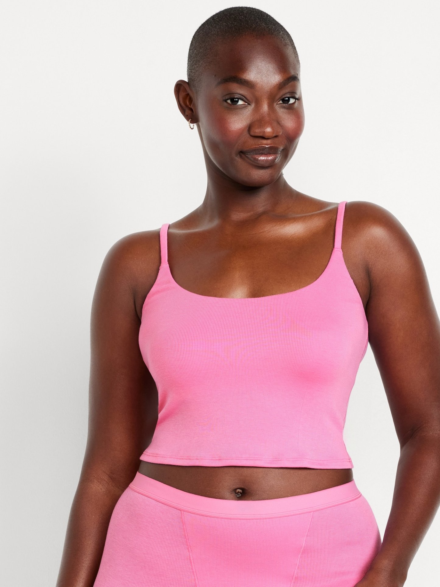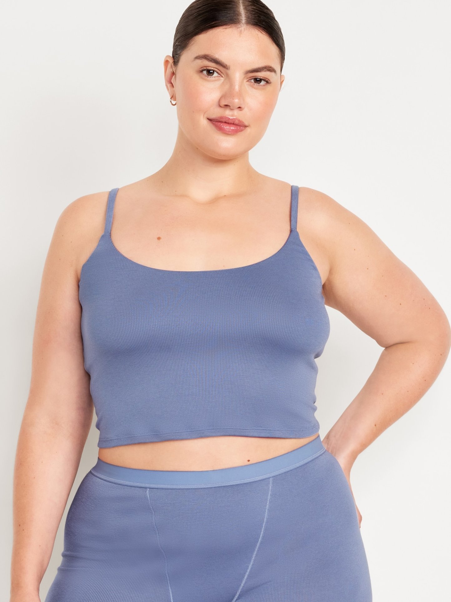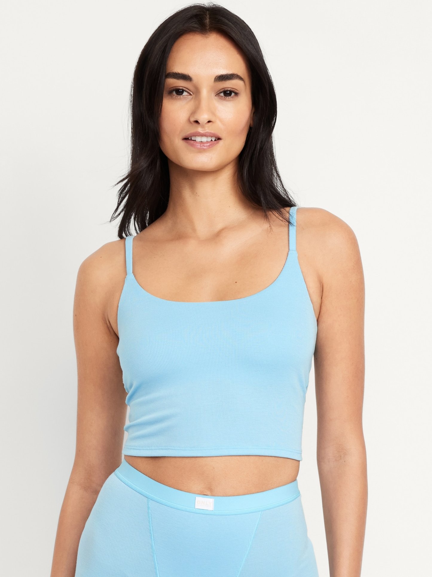Women's brami top hits just below the ribcage.